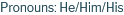 Pronouns: He/Him/His